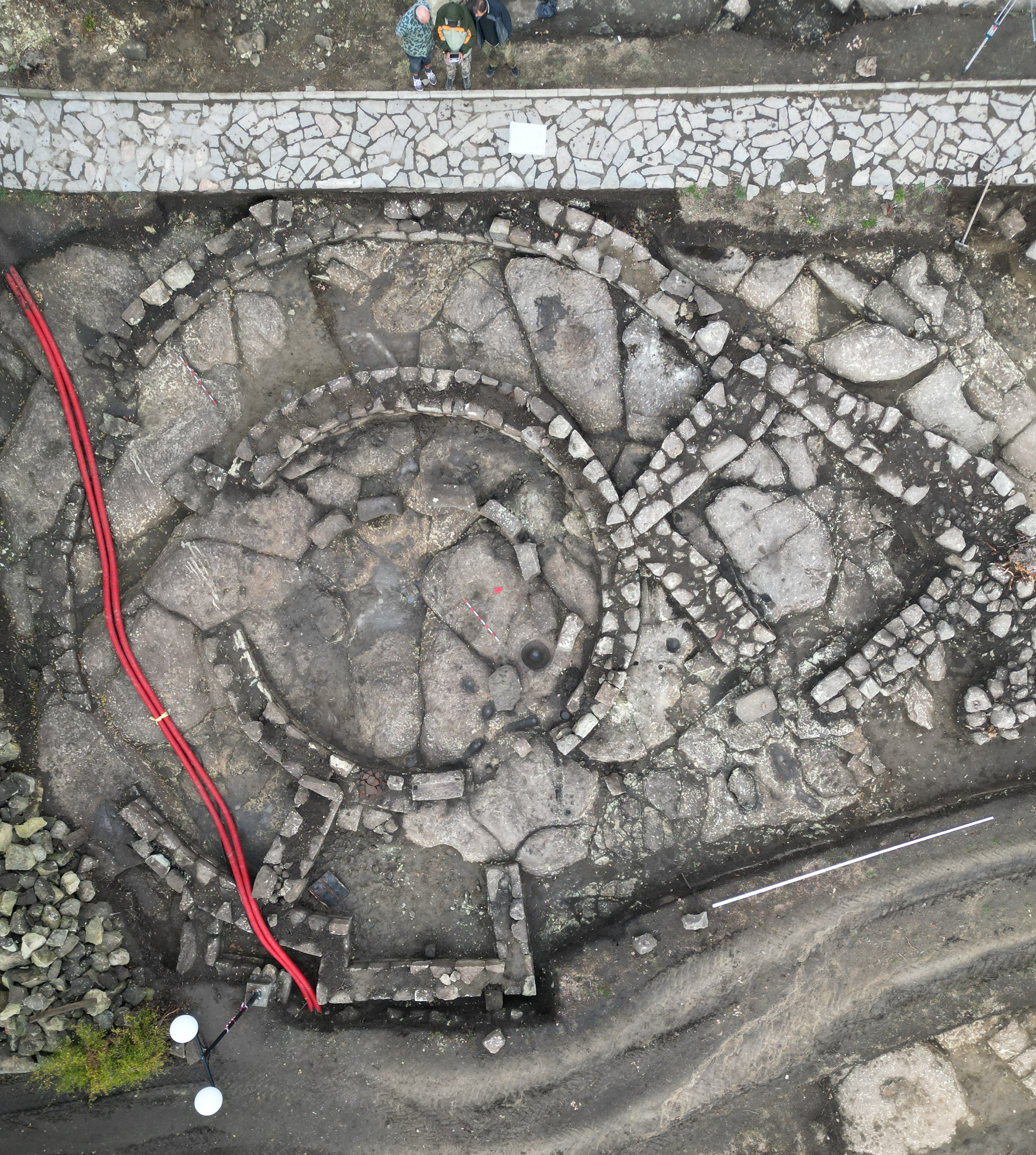 Но каква бе нашата изненада, когато край първия скоро бе открит втори концентричен каменен кръг с диаметър от цели 14 м. Той също е с идеална геометрична форма, зидан с издялани каменни блокове, и с подобна дебелина на стената. От изток се очерта оформено преддверие (пронаос) с четириъгълен план и тържествен вход. Открита в близост масивна атическа база за колона подсказва, че отпред е имало представителен портик. Днес той се намира в още неразкритата по археологически път зона, която предстои да бъде проучена през 2026 г.