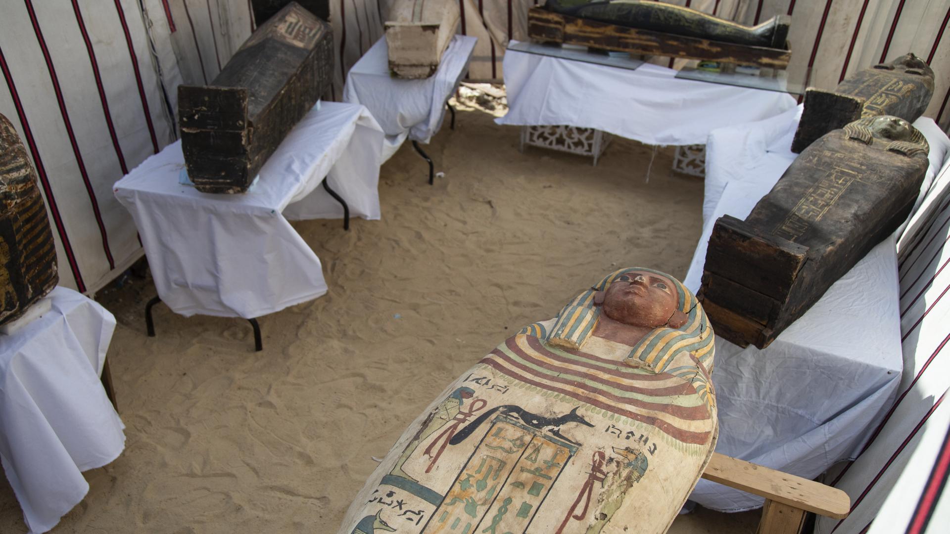 "Изкопахме 52 кладенци с дълбочина от 10 до 12 метра, в които открихме 50 дървени саркофага. Това е първият случай, при който в района на Сакара се разкриват погребения от този период", отбеляза Хауас.