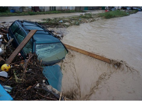 По улиците почти не може да се преминава, тъй като те са залети с кал. В квартала се чуват се сирени на линейки и полицейски коли.