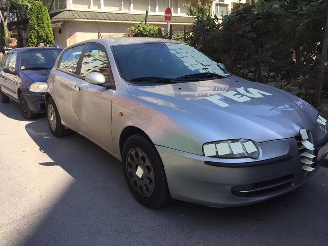 Случката е от квартал "Лозенец", а лепещите листчета са и по предното стъкло, джантите, фаровете, регистрационния номер и маската на автомобила.