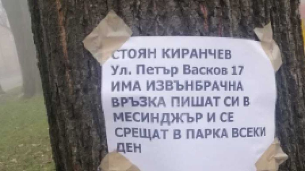 ОТМЪЩЕНИЕ: Цял град разбра за изневярата на Стоян от Пловдив, след като съсед разлепи бележки в парка (СНИМКА)