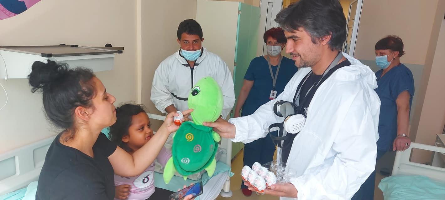 "Пламен Божидаров, Пенчо Пенев и Октай Мюрсел са наша незаменима подкрепа в битката с COVID-19.По празниците те пак са до нас, за да ни помогнат да ваксинираме колкото се може повече хора.Родителите на малките ни пациенти благодариха за милия жест", пишат още от болничното заведение.