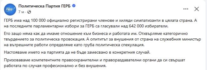 От политическа партия ГЕРБ излязоха с официална позиция по повод твърденията на вътрешния министър Емил Дечев, че техен активист е запушил тунел "Хемус".