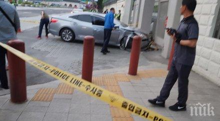 ЕКШЪН В ЮЖНА КОРЕЯ! Кола се вряза в посолството на САЩ