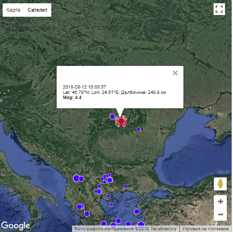 ОТ ПОСЛЕДНИТЕ МИНУТИ! Земетресение в Румъния с магнитуд 4,4 по Рихтер (КАРТА)