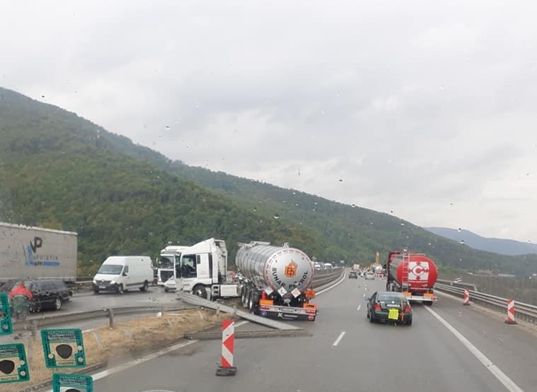 Катастрофиралият ТИР е блокирал скоростните ленти и в двете посоки, като временно движението се осъществява в активните и аварийните. На мястото има екип на "Пътна полиция", който регулира трафика.
