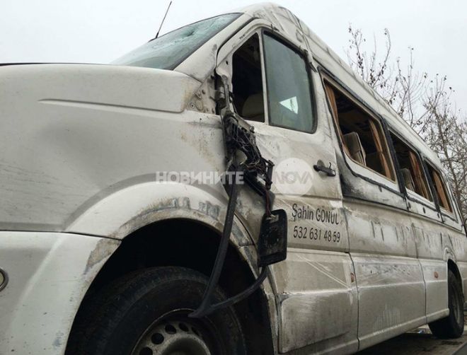 На място има полиция, а първоначалната версия е, че водачът на буса е заспал зад волана. 7 души са в болница с леки наранявания, а жена е с две счупени ръце, съобщава Нова тв..