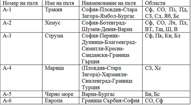 Изменението в наименованията на магистралите може да бъде видяно в следващата таблица: