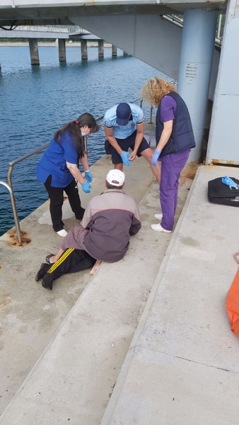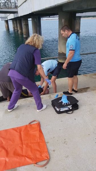 Дядото е успял да премине през охранителите на моста и е стигнал до платформата, откъдето буквално се е метнал в солените води. Дежурният патрул в района веднага се втурнал да го спасява, като му хвърлили спасителен буй, но самоубиецът отказал да го хване. Именно това наложило единият от служителите на "Укорс" да скочи и да го извади.
