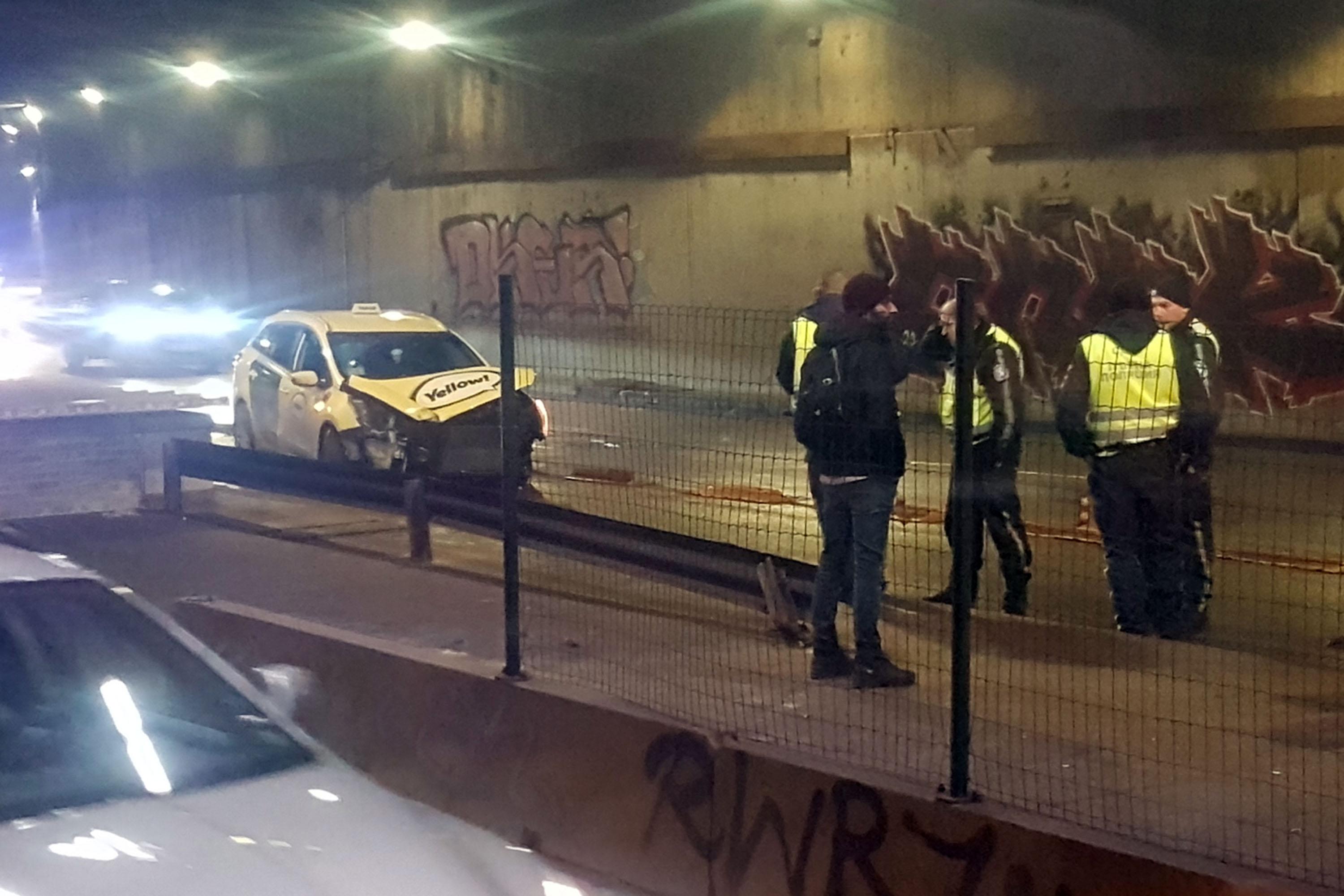 Таксиметров автомобил катастрофира в подлеза при НДК. По първоначални водачът е бил засечен от друг автомобил, съобщава "Булфото".