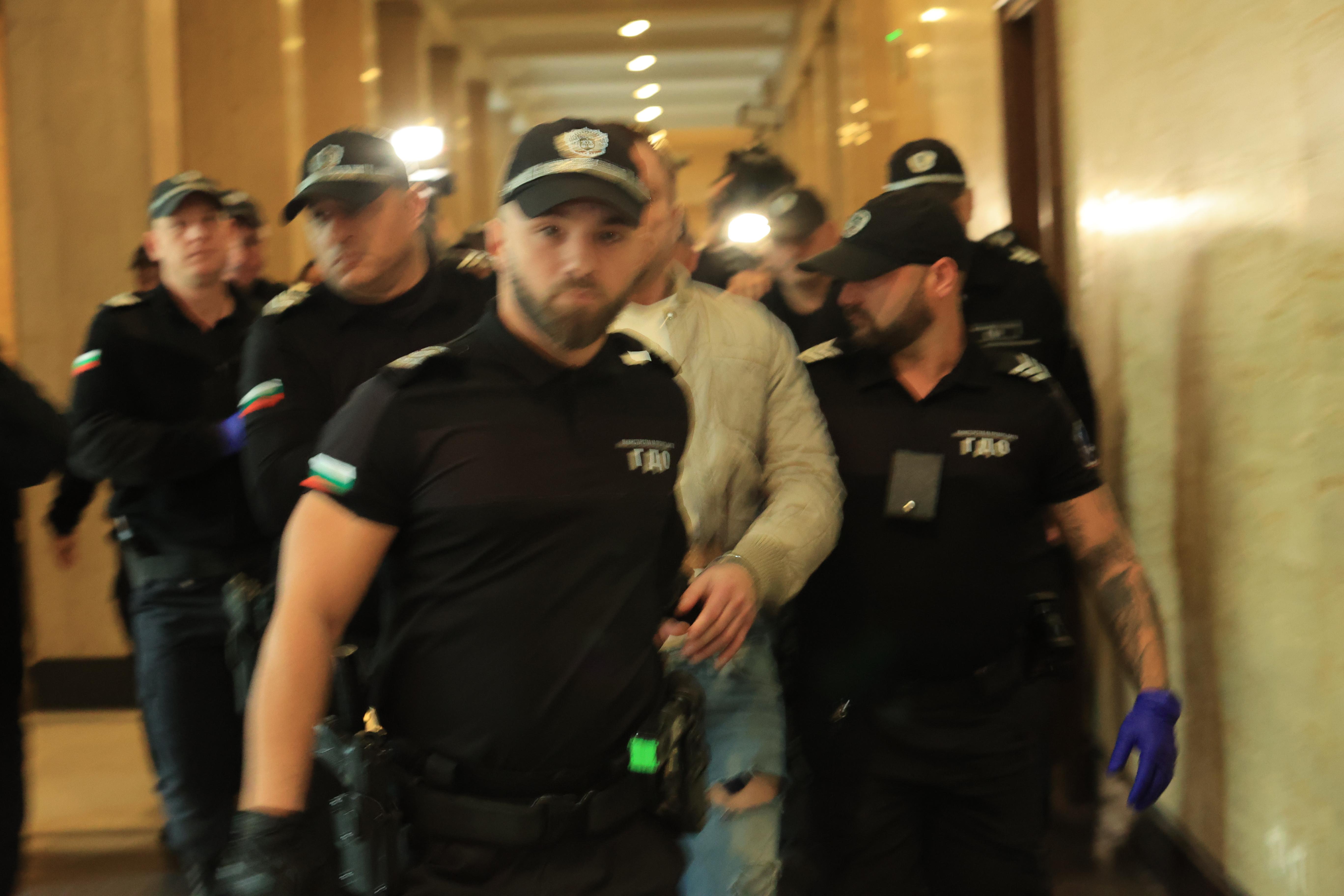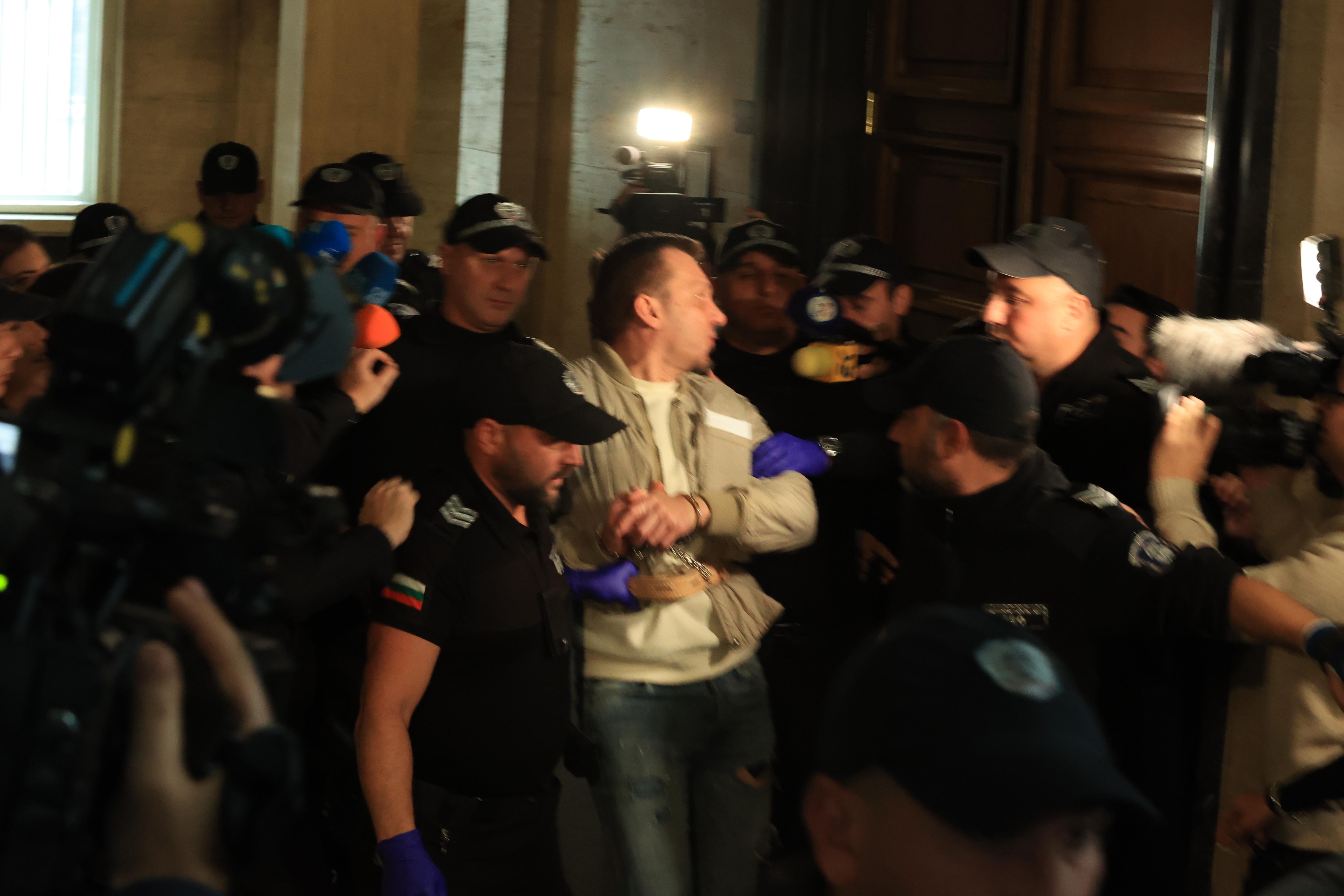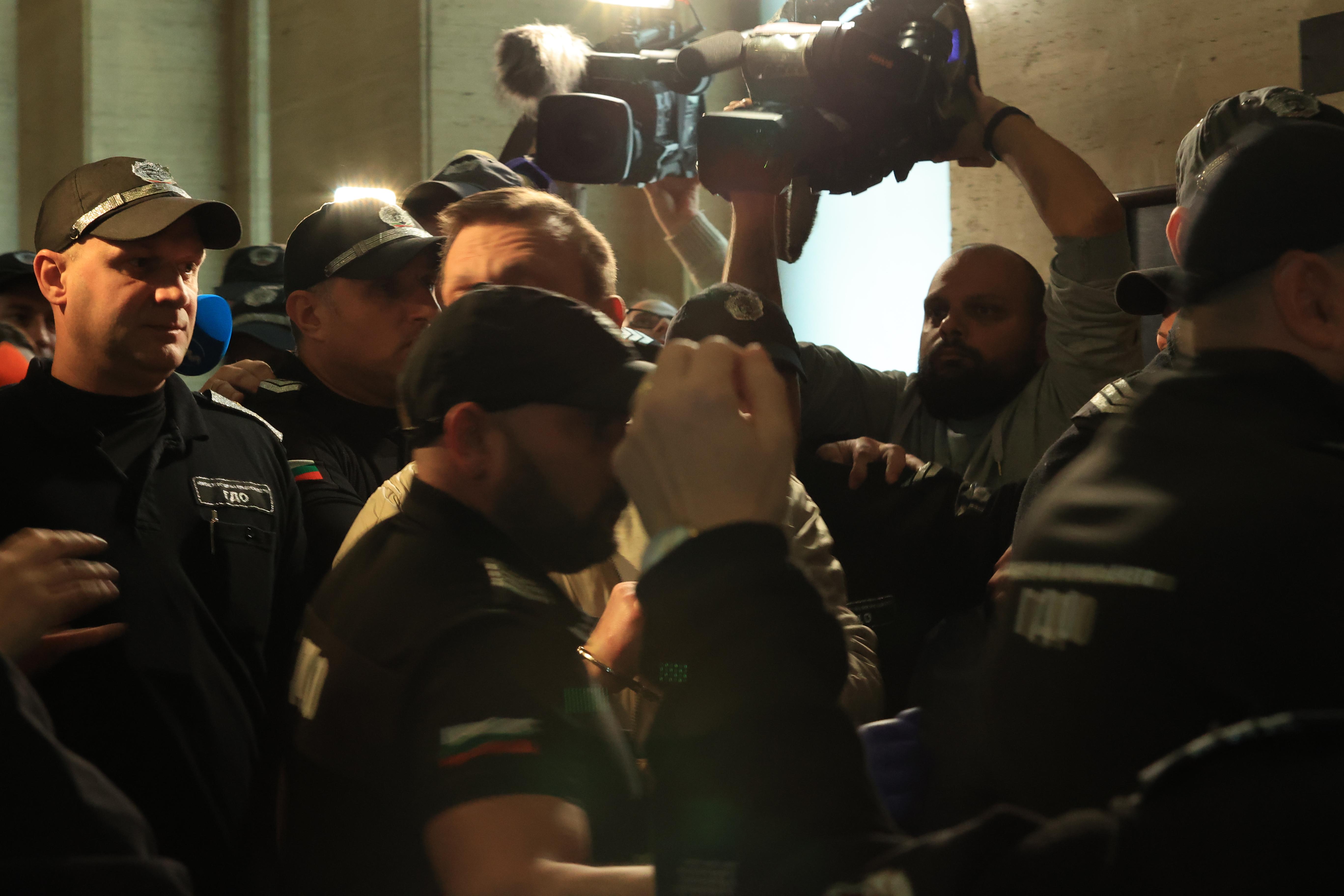 Той е задържан по обвинение в принуда, за която е използвано огнестрелно оръжие. Съдът гледа мярката и на задържаните заедно с Хасърджиев трима души.