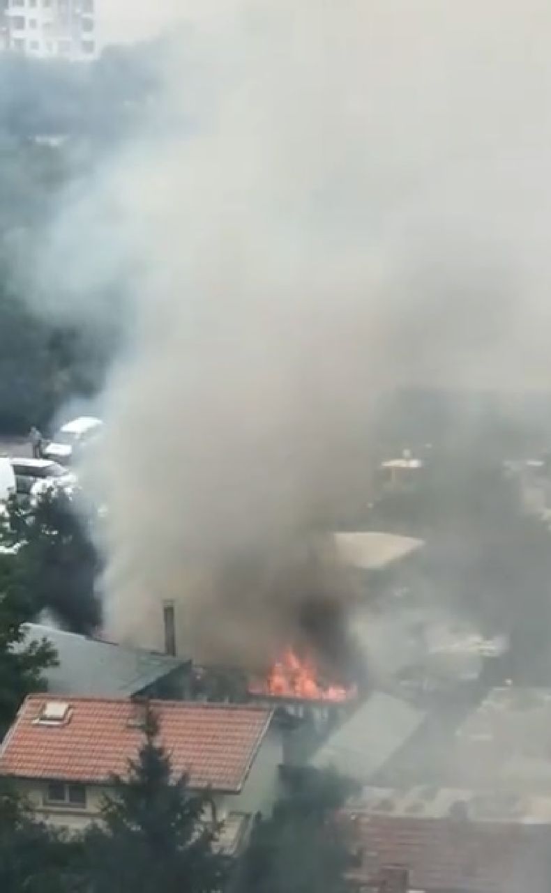 Голям пожар гори в столичния квартал "Надежда 6". На място има 3 пожарни автомобила, линейка и полицейски екип.