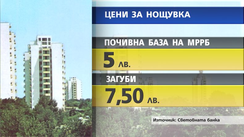 Най-ниските цени за нощувка са в почивна база на Министерството на регионалното развитие и благоустройството - 5 лева на човек на вечер, и в базите на МВР, където средните цени на нощувка са около 7,50 лева на човек.