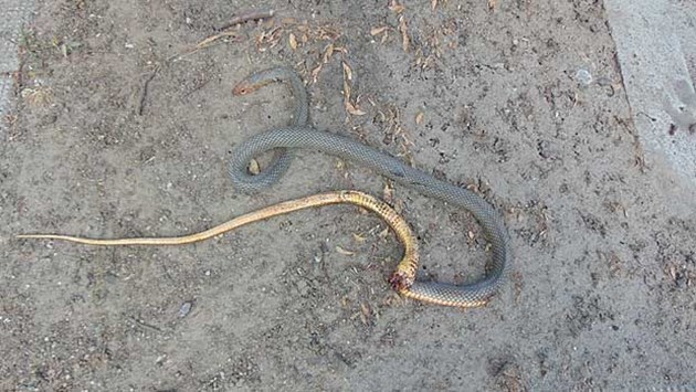 Двуметровият смок е един от най-големите, които са се появявали в рилското градче. Влечугото, което се води "стрелец" заради бързото си придвижване, пропълзяло на пътното платно, където било прегазено от лек автомобил, но останало само без част от опашката си.