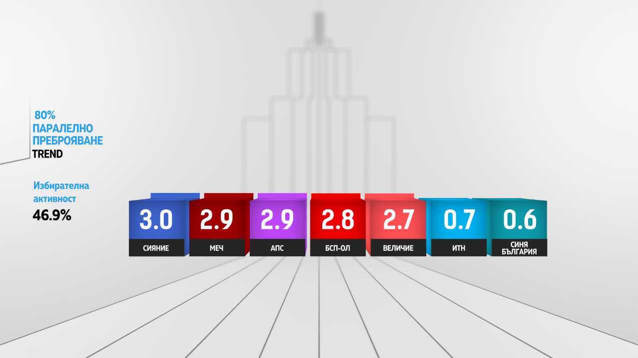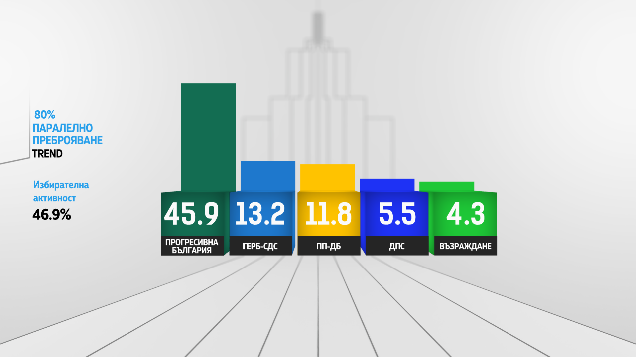 ПАРАЛЕЛНО ПРЕБРОЯВАНЕ НА "ТРЕНД": „Прогресивна България” печели с 45.9%, ГЕРБ са втори с 13,2 на сто, БСП изпадат от каруцата...