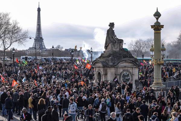 Френският премиер Елизабет Борн беше посрещната с освирквания в парламента. На този фон френската полиция използва сълзотворен газ срещу демонстранти в Париж. Недоволните граждани се събраха на централния площад във френската столица.