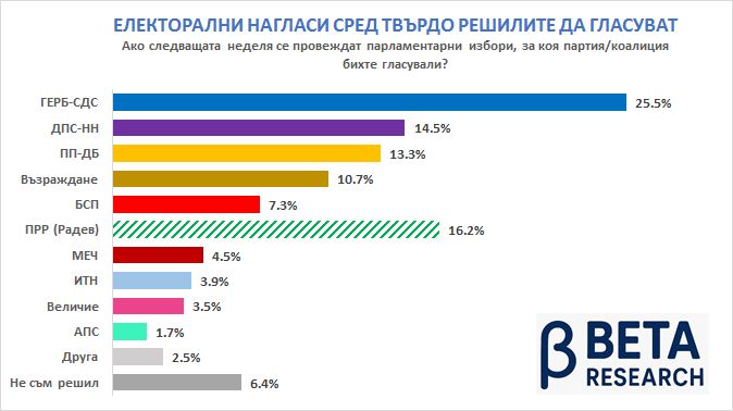 Ето, вижте, изследването показва прогнозна активност от 42-43%, а всички знаем, че Радев ще изкара негласуващите до урните и активността ще иде някъде към 120-125%, може и 130%, ако няма гъби. На теория и това е вярно (освен трицифрената активност), но на практика за ПРР няма да се случи. Партията може да е нова, но политическият субект-носител Радев е стар и износен. Пак напомням за бардака и курвите...