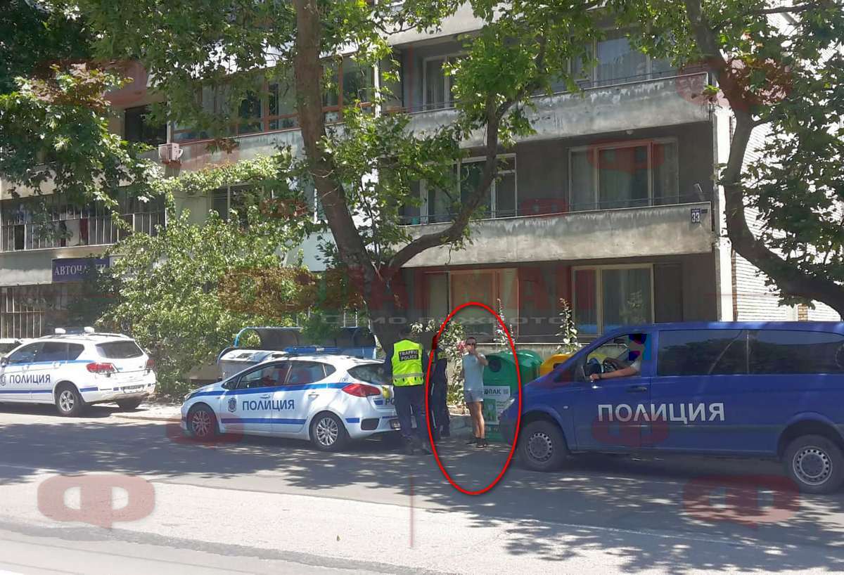 Обискираният мъж е на видима възраст около 25 години, облечен е със спортни къси панталони и сива тениска, носи тъмни очила. Той е видимо притеснен и закри лицето си, за да не бъде сниман.