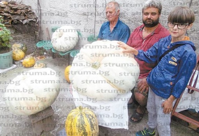 Тикви гиганти отгледаха в градината си семейство пенсионери от Кресна. Иванка и Кирил Стефанови се видяха в чудо как да ги натоварят на колата си. Една от балките (б.р. Бели тикви) отчете на кантара 48 кг, а другите между 30 и 40 кг.