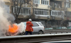 Горяща кола затруднява движението по „Цариградско шосе“ в София (СНИМКИ)