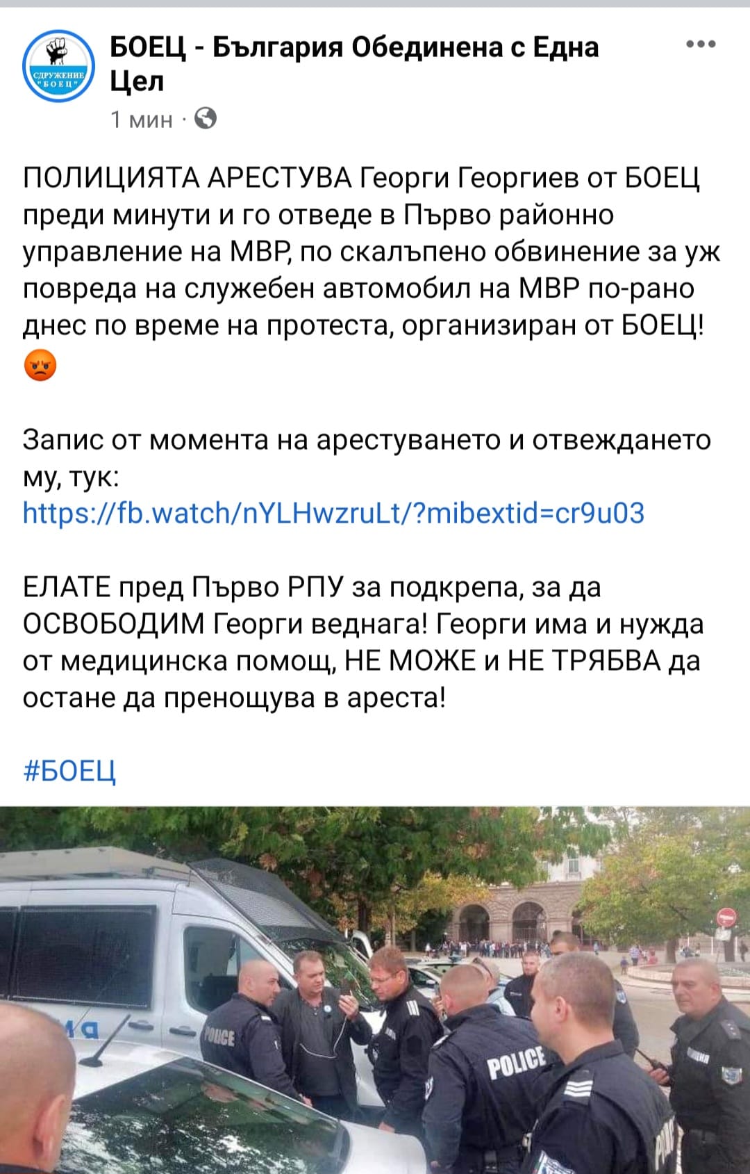 Бързо всички пред I РПУ да го спасяваме, че той имал нужда от медицинска помощ и не можел и не трябвало да пренощува в ареста, зоват от БОЕЦ.