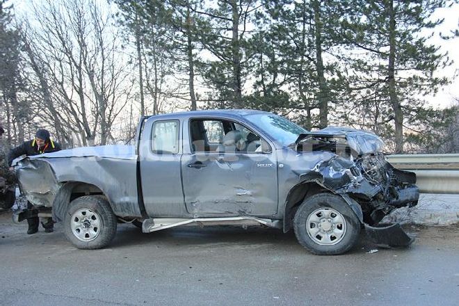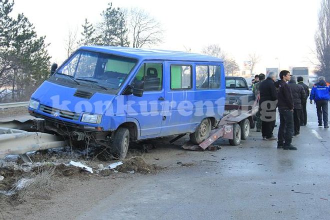 Mикробус с прикачена на него платформа се забива в разделителната мантинела, пикапът, който бил натоварен на нея се свлякъл и се забил в автобуса. Обстоятелствата около инцидента се изясняват от органите на реда. Движението по главния път не бе затруднено.