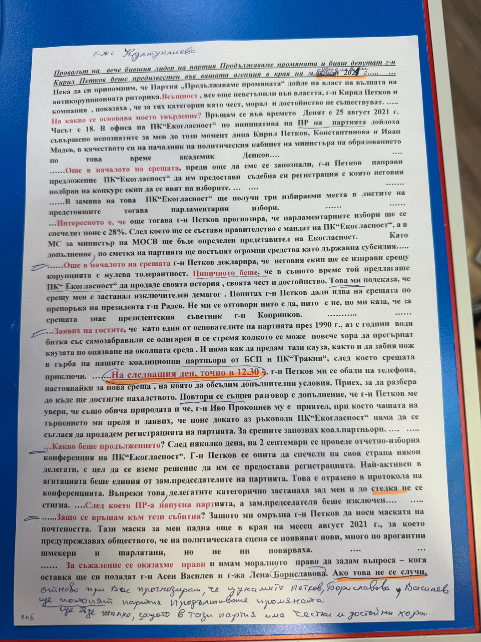 Връщам се във времето назад, на 25 август 2021 г. се проведе тази среща. В нашия офис, в 18 ч се появиха Кирил Петков, Калина Константинова и Иван Модев. Петков поиска Екогласност да предостави съдебната си регистрация и да получи три избираеми места в парламента, като прогнозата е да се спечелят 28%. Това се случи на парламентарните избори. След това трябваше да се състави правителство и за Екогласност трябваше да се получи огромна субсидия, като парламентарно представена партия. Те декларираха, че ще се борят корупцията, а дойдоха да ни купят, заяви гостът в студиото.