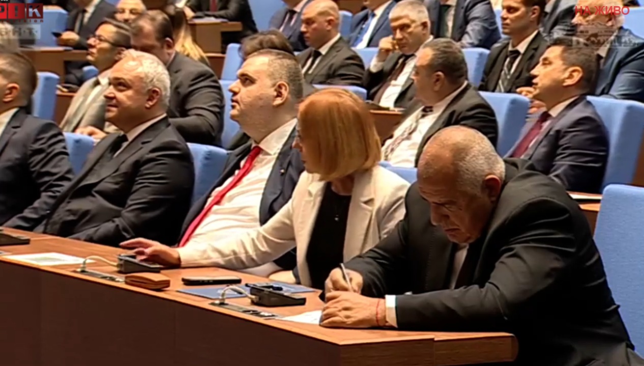 Самият Борисов не беше особено впечатлен от появата на Радев и от последващата реч на най-стария депутат, който откри заседанието - Румен Миланов. През цялото време Борисов беше вперил поглед надолу пред себе си и си чертаеше нещо на лист хартия.