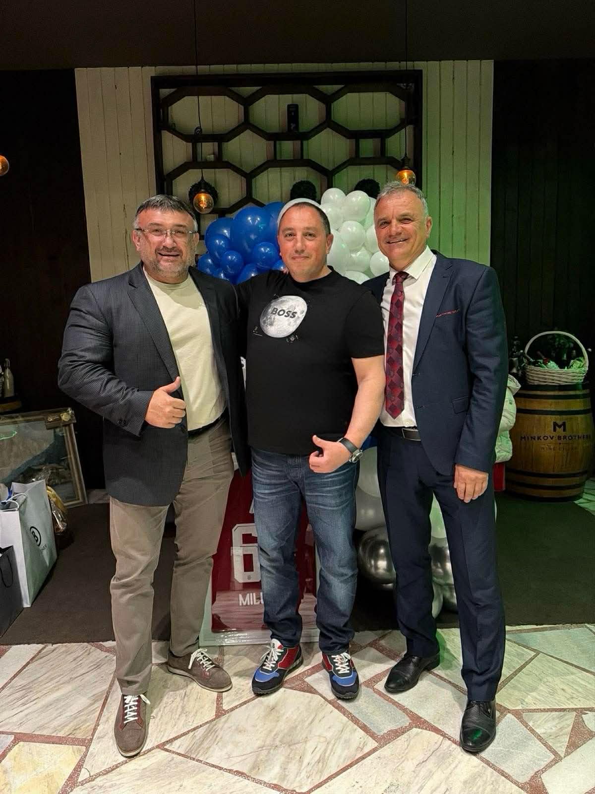 Снимките говорят повече от всякакви политически декларации. На едната – Христо Гуцалски, самоковският бизнесмен с бръсната глава и костюм, стои рамо до рамо с бившия президент Румен Радев. Усмивки, слънце, камери. Това е днес. А вчера - на другата снимка същият Гуцалски, този път в черна тениска с надпис BOSS, е прегърнал здраво депутата от ГЕРБ Младен Маринов по време на предизборна кампания. До тях – още един костюмар. Всъщност, това е още един депутат от ГЕРБ - Валентин Милушев.