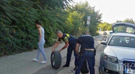 ДЖЕНТЪЛМЕНИ! Полицаи смениха гумата на закъсала млада шофьорка