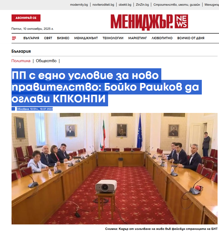 "Когато управлявахме заедно с правителството на Кирил Петков, самият той искаше да има собствена бухалка. Затова искаше Бойко Рашков да застане начело на КОНПИ още тогава. Аз лично съм присъствал на тези разговори и на онези коалиционни съвети тогава. Затова ги свалихме. Бутнахме ги, защото искаха да превърнат КОНПИ в бухалка" - това са думи на депутата от ИТН Станислав Балабанов от 27.07.2025 г.