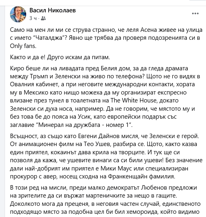 Това заявява в свой ироничен коментар във Фейсбук журналистът Васил Николаев.