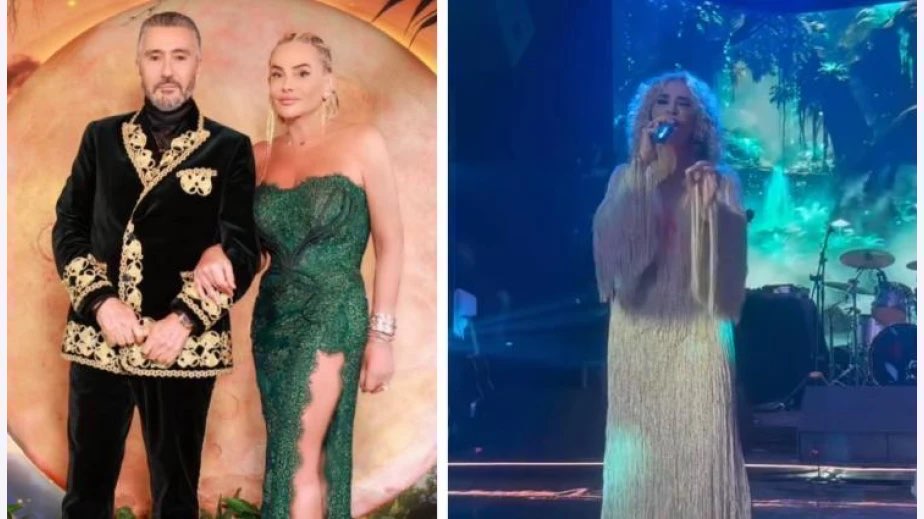Ослепителната му съпруга Маринела блестеше в изискана рокля от изумрудена дантела