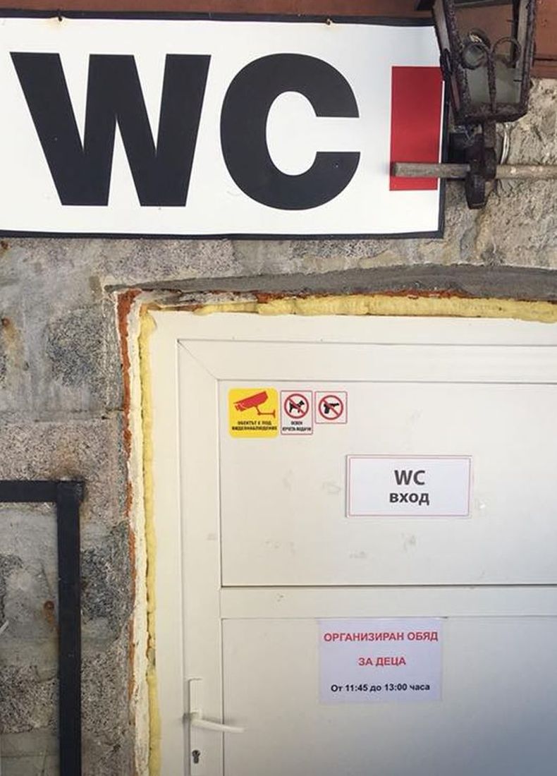 Все си мислехме, че на подобни абсурди е логично да станем свидетели в градовете, където от забързаност и напрежение хората понякога вършат странни неща. Като например да лепнат табела за организиран обяд за деца на... вратата на тоалетна.