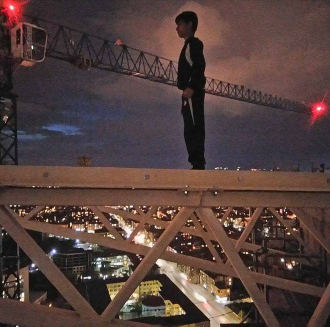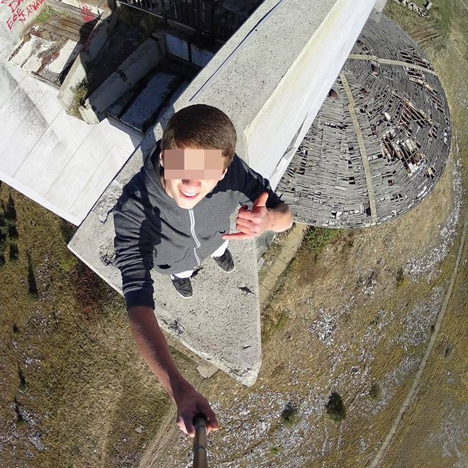 Той публикува снимки на ученици, които се снимат на ръба на покриви на високи сгради, парапети и дори по кулата на строителен кран. "Много моля да обърнете внимание на приложените снимки.", пише разтревоженият мъж, регистрирал се като Nikola Kortov във Facebook.