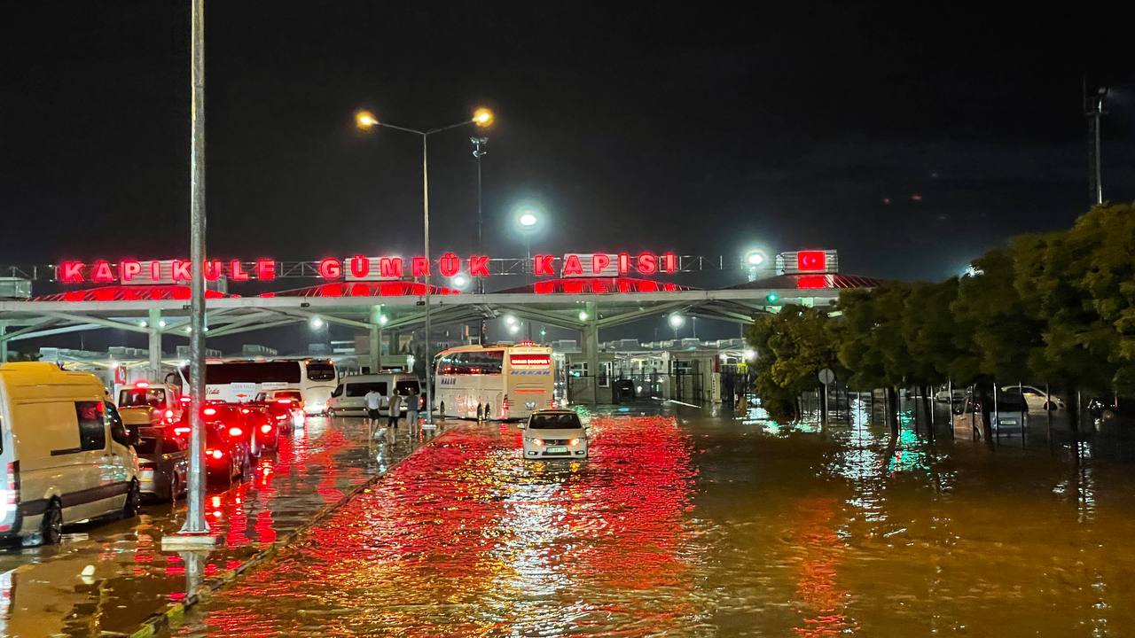 Турските медии съобщават, че водата се е покачила дотолкова, че колите на пункта са започнали да се пълнят с придошлата вода.