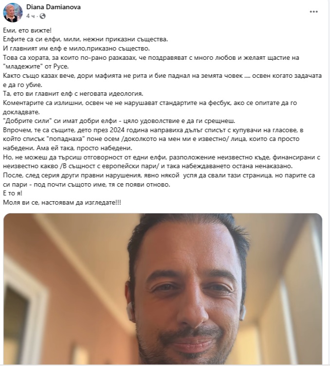 Пиар експертът Диана Дамианова коментира шокиращо видео, публикувано от "елфа" Петко Петков, основният представител на приближената до Ивайло Мирчев организация "БГ Елфи". Във видеото, в което Петков се е самозаснел, той обяснява, че е милионер, че живее като доброволец в Украйна и се обръща към вътрешния министър Данил Митево с грозни и гнусни обиди.
