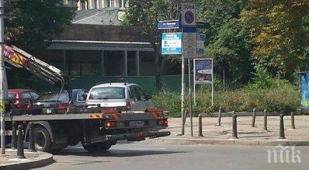 Шофьорът не бил в колата и инспекторите решили да я вдигнат с паяк. Сложили скобите с въжетата и в този момент се появил мъж, който вдигнал скандал.