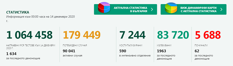 Черната статистика при починалите обаче продължава. Само за последното денонощие живота си загубиха още 62 души. От началото на пандемията броят на починалите е 5688.