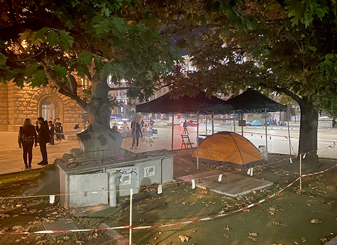За поредна вечер площадът пред президентството е празен и става все по-пуст. По новините и на трите големи телевизии обаче не спират да броят поредна вечер на "протести" и да обясняват как хората ей сега ще се съберат и ще тръгнат на шествие.