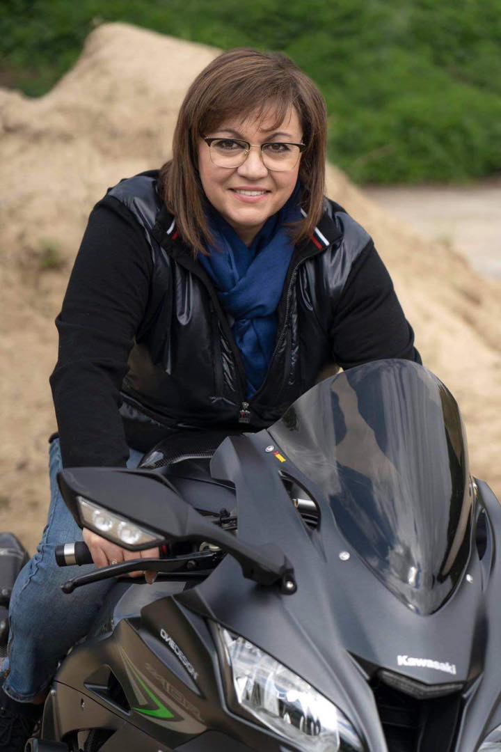 "Днес се открива мотосезонът. Пожелавам на приятелите, с които през годините сме били в клубовете и на всички мотористи здраве и бъдете внимателни. Нека няма пострадали и жертви на пътя", написа във Фейсбук Нинова и сложи снимки, на които е маскирана като мотористка и яха мотор.