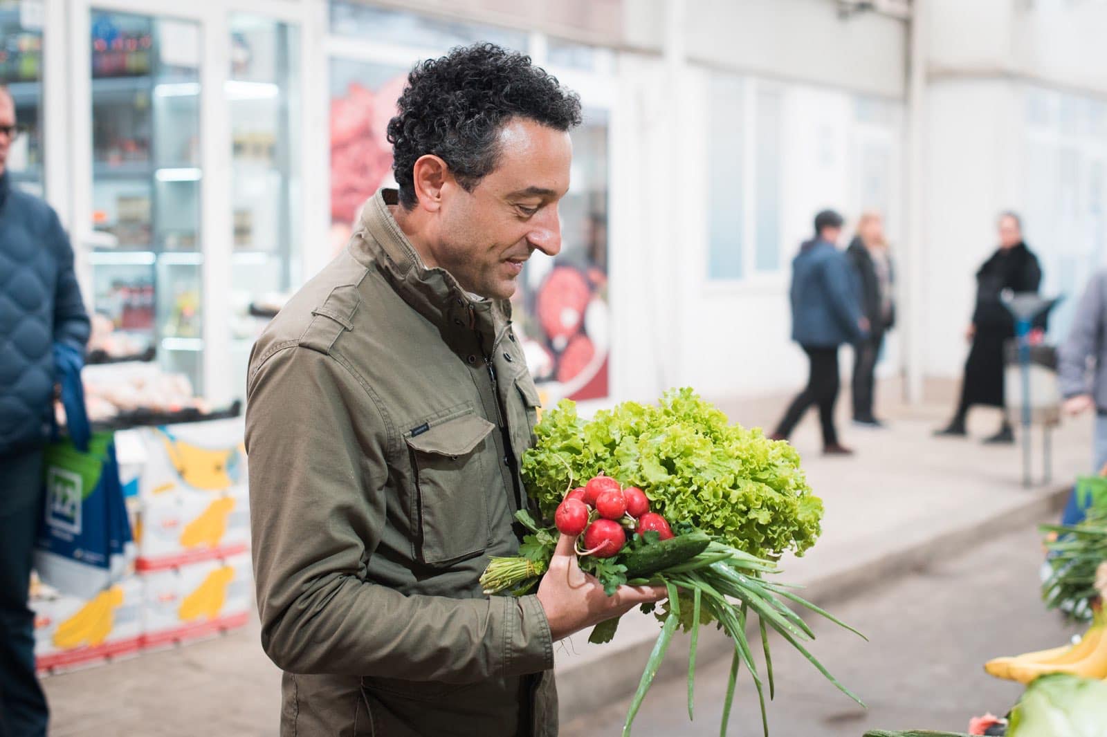 ПРЕДИЗБОРНИ ПОСЛАНИЯ ОТ ПАЗАРА: Милионерът Даниел Лорер пълни торбата със скъпи марули и краставици, щял да си прави салата българска китка (СНИМКИ)