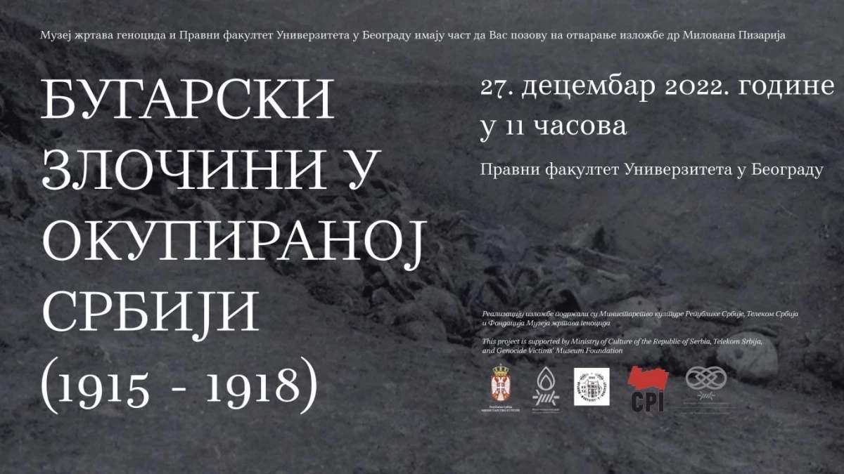 В центъра на сръбската столица Белград, в Държавния юридически факултет в Белград, бе открита "научна изложба", която има за цел да разкрие българския геноцид над сърбите, българските военни престъпления, както и българските кланета над сърбите в Македония.
