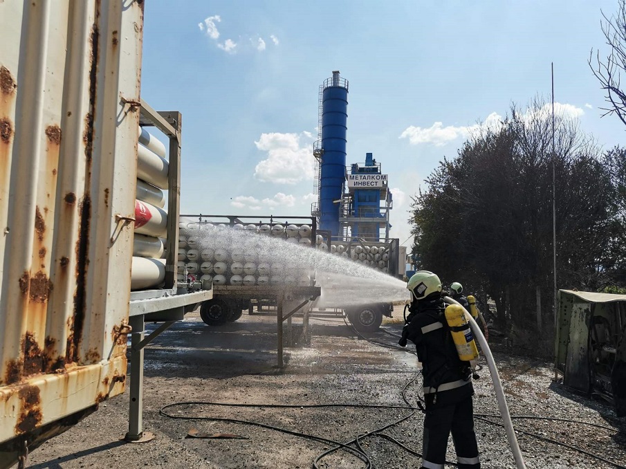 В резултат на професионалните им действия огънят, при който няма пострадали хора, е погасен. Повредена е спирателната арматура в обекта. Поради наличието на бутилки с метан, е предприето постоянно охлаждане и контролирано изпускане на газта.