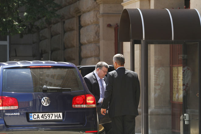 Лидерът на ГЕРБ Бойко Борисов влезе в президентството без да каже и дума пред журналистите. В същото време председателят на парламентарната група на "Коалиция за България" Наско Мерджанов изблъска грубо журналист от Канал 3, който се опита да му зададе въпрос.