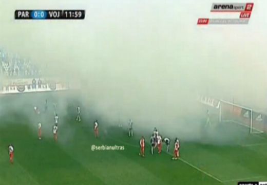 Феновете на сръбския гранд Партизан прекъснаха за около 10 минути срещата с Войводина от футболното първенство на страната.