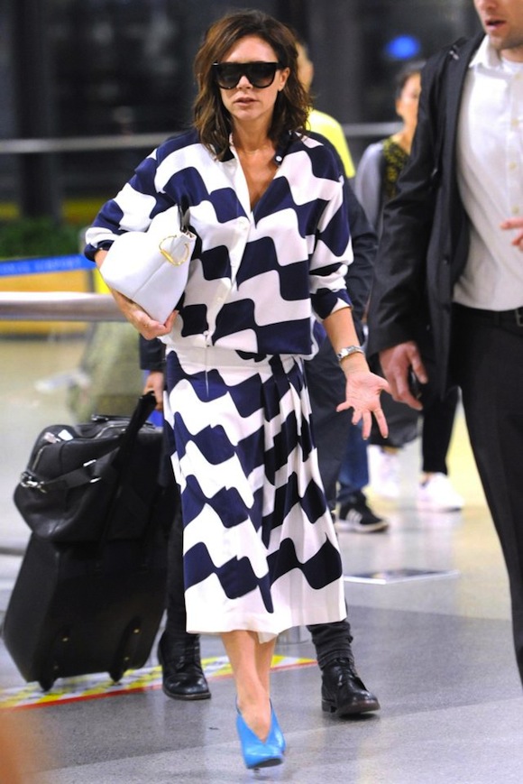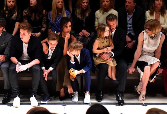 С огромните тъмни очила, които носи и в дъжд, и в студ, 43-годишната дизайнерка се опитва да прикрие торбичките под очите си, причинени й от Бруклин (18 г.), Ромео (14 г.), Круз (12 г.) и малката Харпър (5 г.).