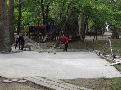 Съществуващата детска площадка се намира извън границите на новата бетонна плоча. Един от отговорниците на обекта заяви, че територията е частна и собственикът може да прави каквото си иска с нея.