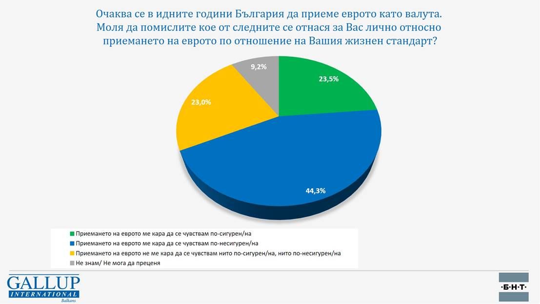 ПРОУЧВАНЕ НА "ГАЛЪП": Близо половината българи се притесняват от приемането на еврото (ГРАФИКА)