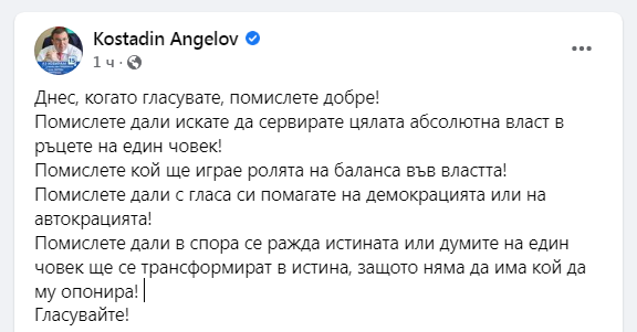 Днес, когато гласувате, помислете добре, написа бившият здравен министър Костадин Ангелов във Фейсбук.